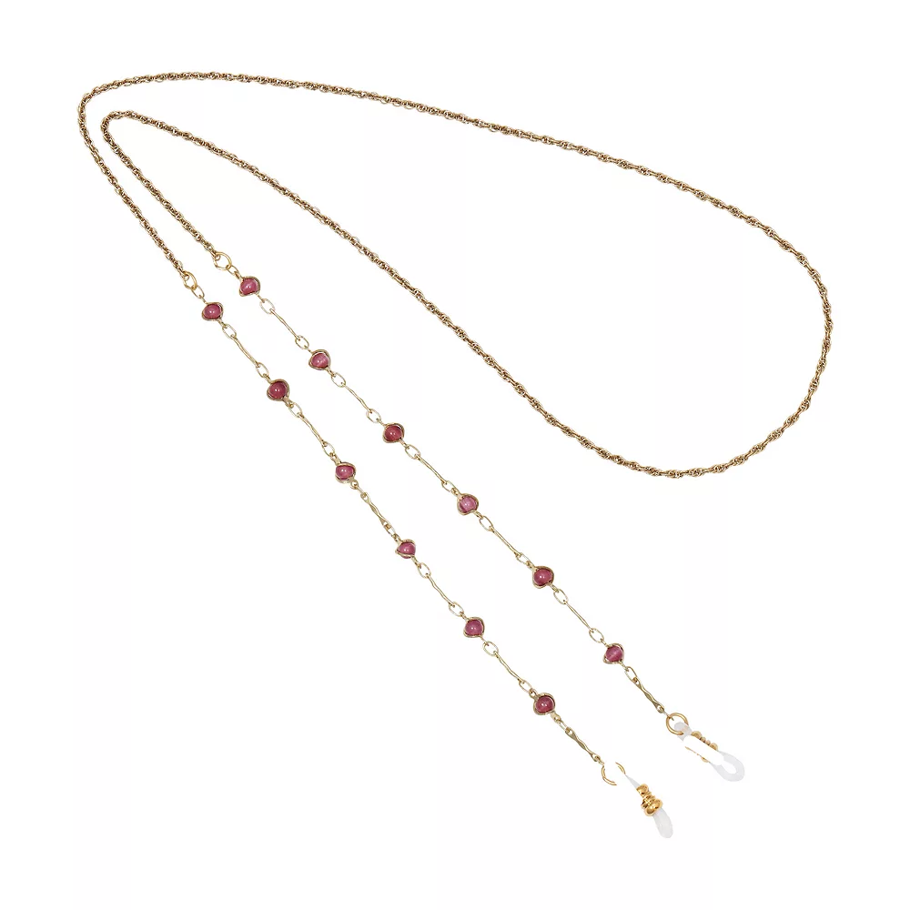 This 1928 Gold Tone Purple Faux Cat’s Eye Bead Eyeglass Holder is a fabulous way to keep your glasses close at all times.