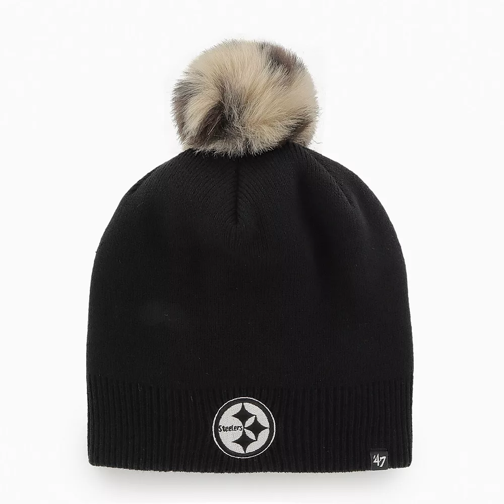 Match more outfits with the understated look of this Pittsburgh Steelers Serengeti beanie hat from ’47. It features the Pittsburgh Steelers logo in a monochromatic design and a furry pom. The stretch fit also creates a snug feel for added warmth.