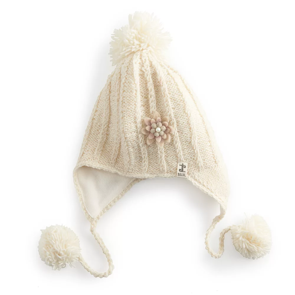 Stay warm all winter long with this women’s floral pom earflap cap from SIJJL.